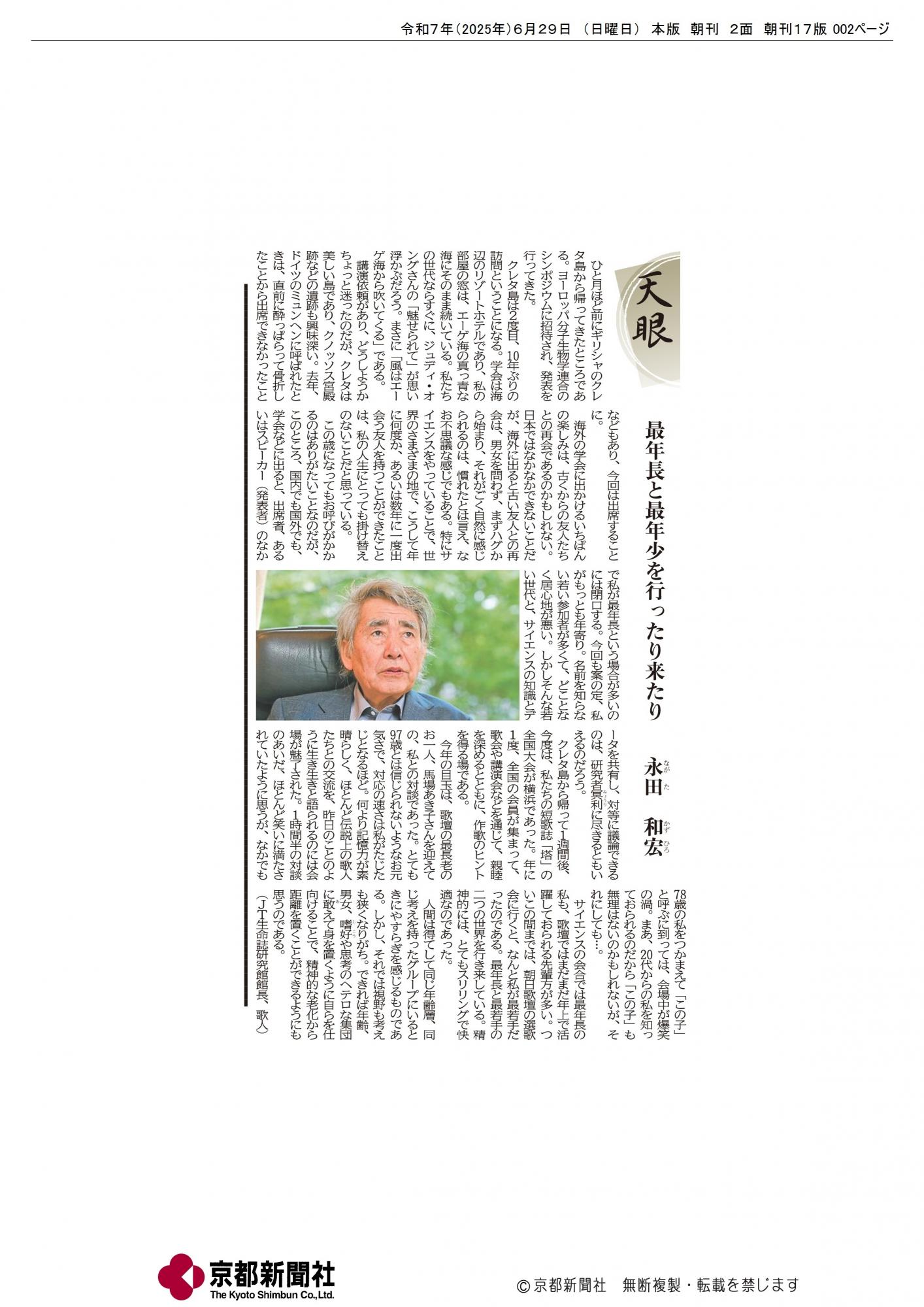 3. 「最年長と最年少を行ったり来たり」永田館長 京都新聞掲載記事(★許可を得て転載)