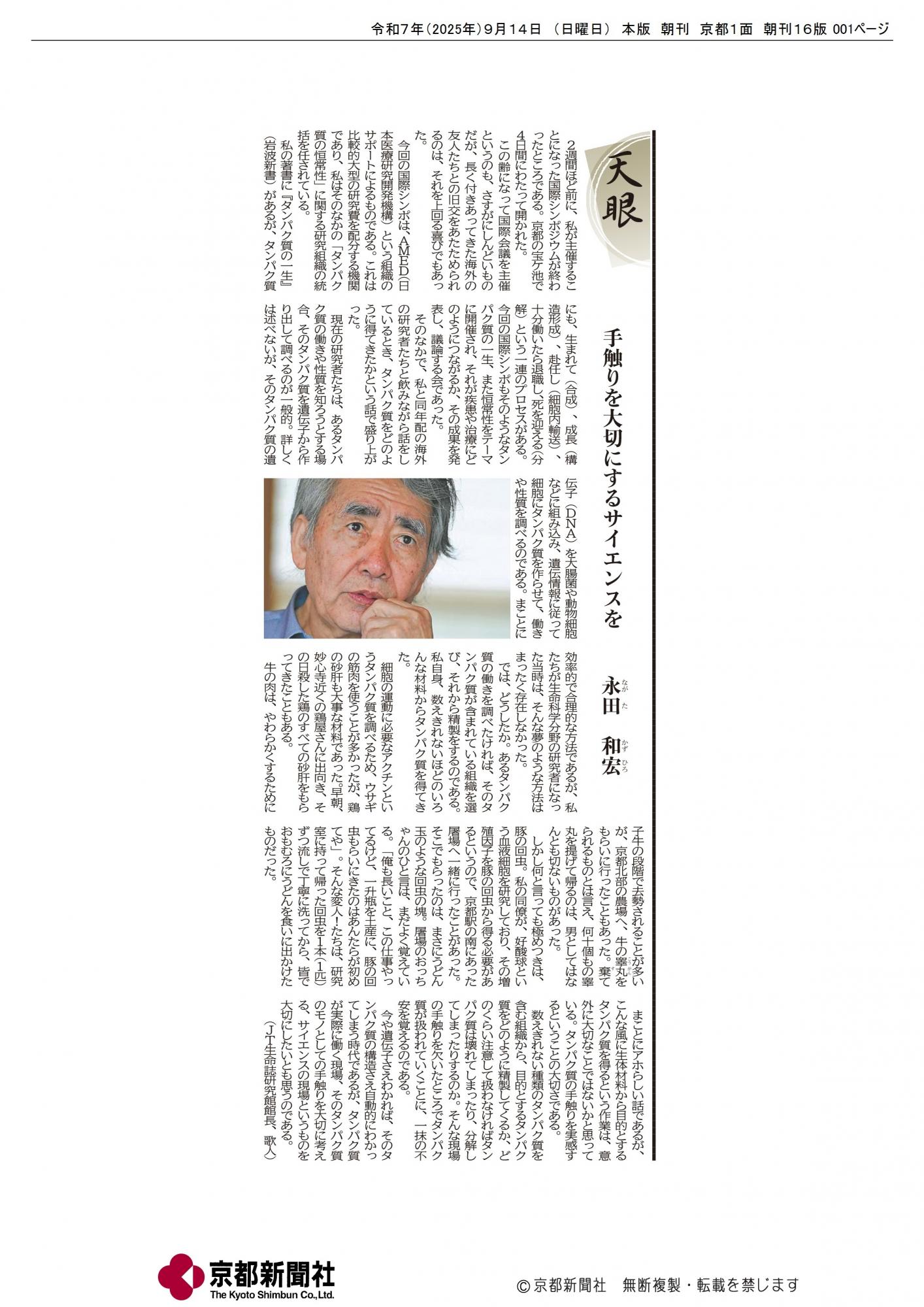 「手触りを大切にするサイエンスを」永田館長 京都新聞掲載記事(★許可を得て転載)