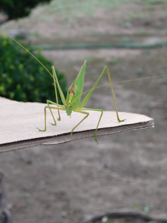 クダマキモドキとカマキリの追いかけっこ②。写真をとる人間を威嚇するカマキリ。