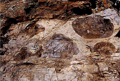 この一帯は、河川性堆積物が数千~数万年のサイクルで積み重なっている。上部に泥や細粒砂岩、真ん中に中粒砂岩、そして一番下が荒い砂岩という構成で、このサイクルが3回繰り返している。恐竜の化石は、一番下の荒い地層部分から出てきた。ここは洪水性堆積物がたまったところで、草原などで死んだ恐竜が腐乱後に流されてきて堆積したと考えられる。背骨などの摩滅が少なく、トケが折れていないので、比較的近くから流されたと考えられる。