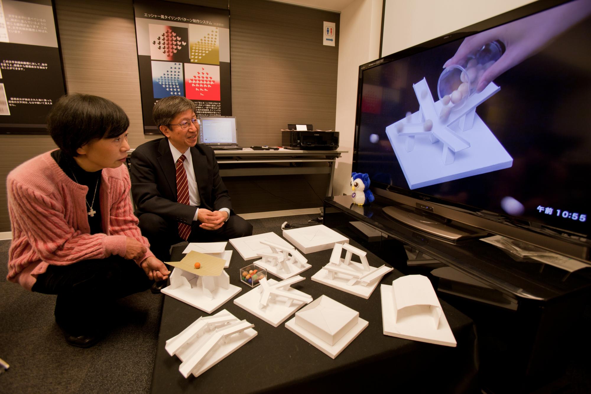 人間は、絵を見てそこに描かれた立体を理解できますね。私は数理工学の立場でコンピュータに同じことをさせようと考えて、絵を理解するパターン認識の研究をしていて新しい計算法を見つけました。その計算をするソフトウェアが投影図を立体として正しく理解できるかどうか、あり得ない立体を描いただまし絵で確かめてみたのです。するとそのほとんどは立体として理解されませんが、ときどき立体になると理解するんです。つまり、「不可能立体」とされるだまし絵の中には立体として組み立てられるものがあることがわかったのです。