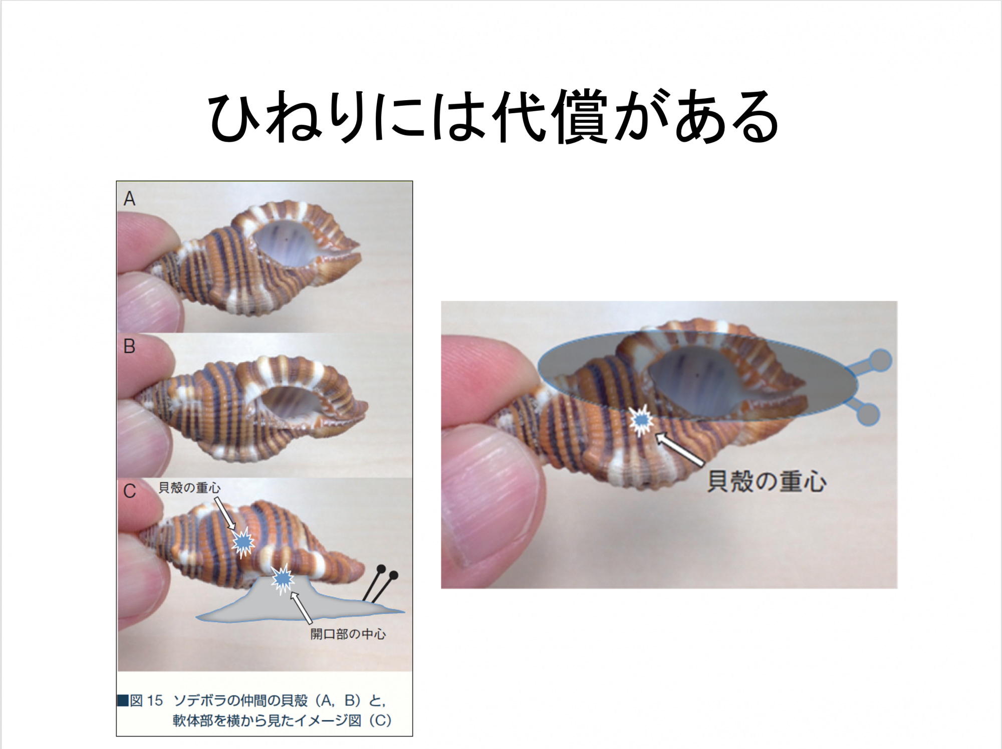 貝殻の形が左右非対称になってしまう。そうすると重心がズレるわけです。