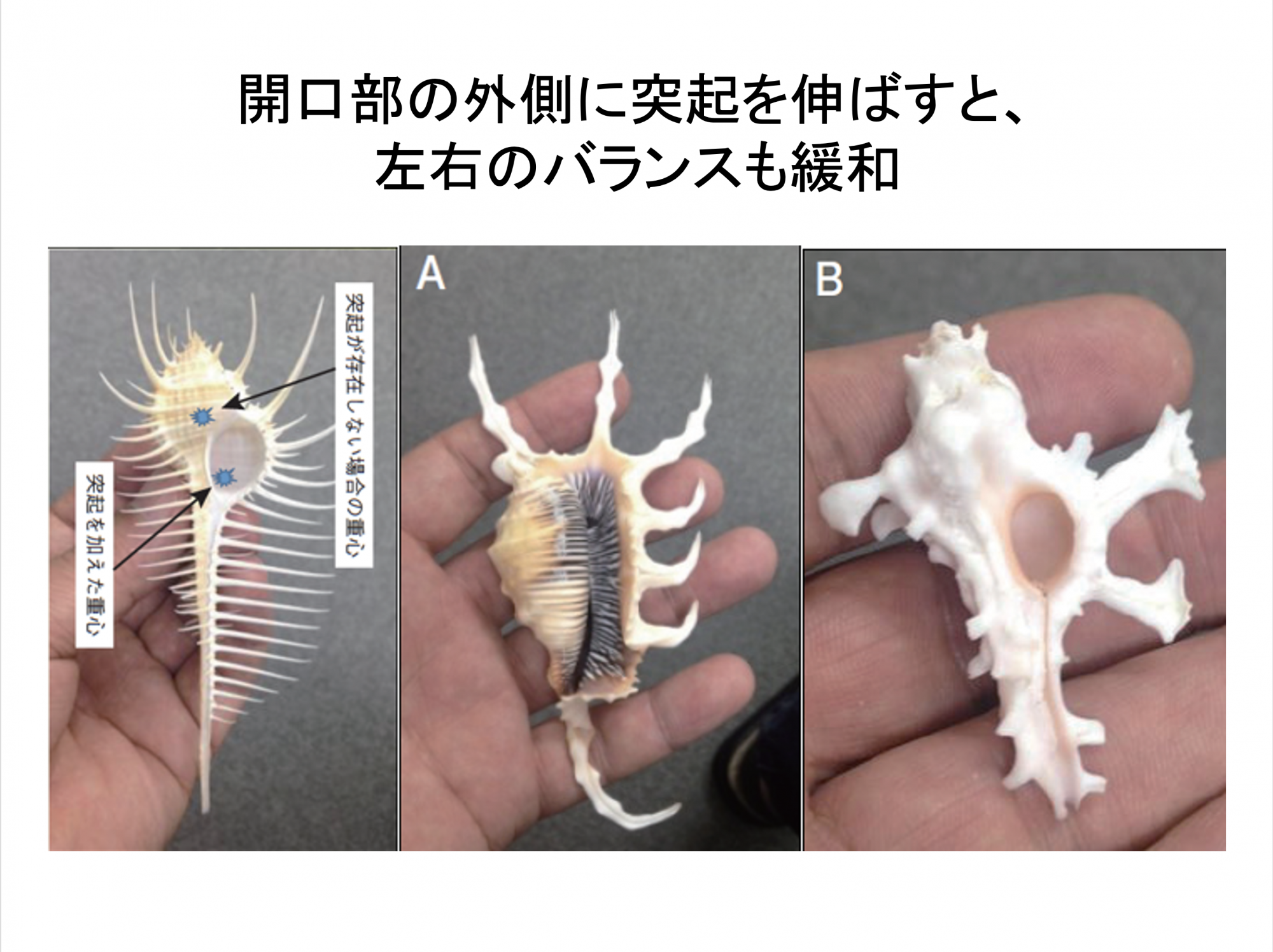 やじろべえみたいに重さでバランスが取れたらいいのです。貝殻の重心が真ん中に来るようにするために、あのトゲがあるわけなんですね。