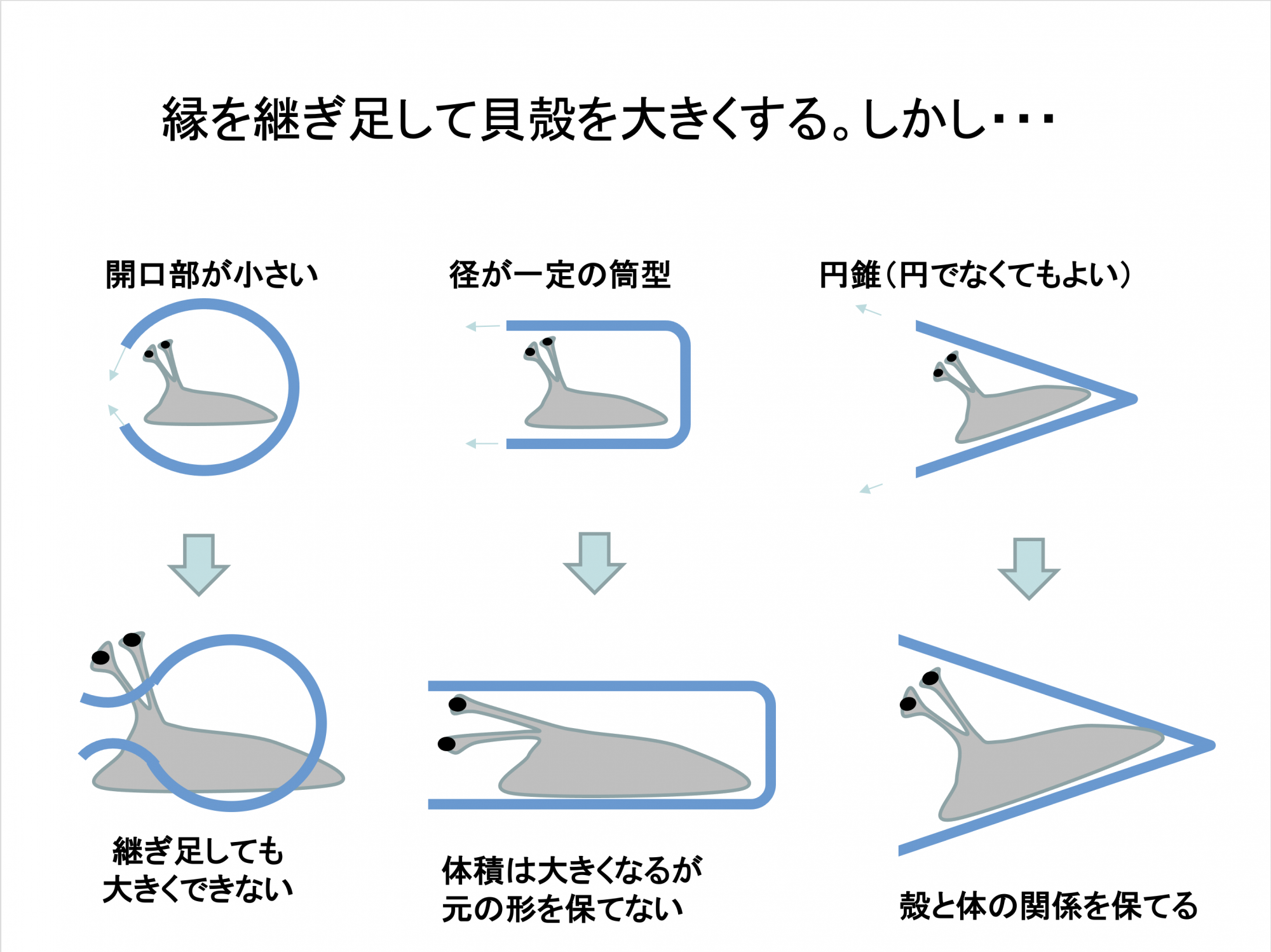 では、サザエのような巻貝はなぜ、ひねりが必要なのでしょうか?