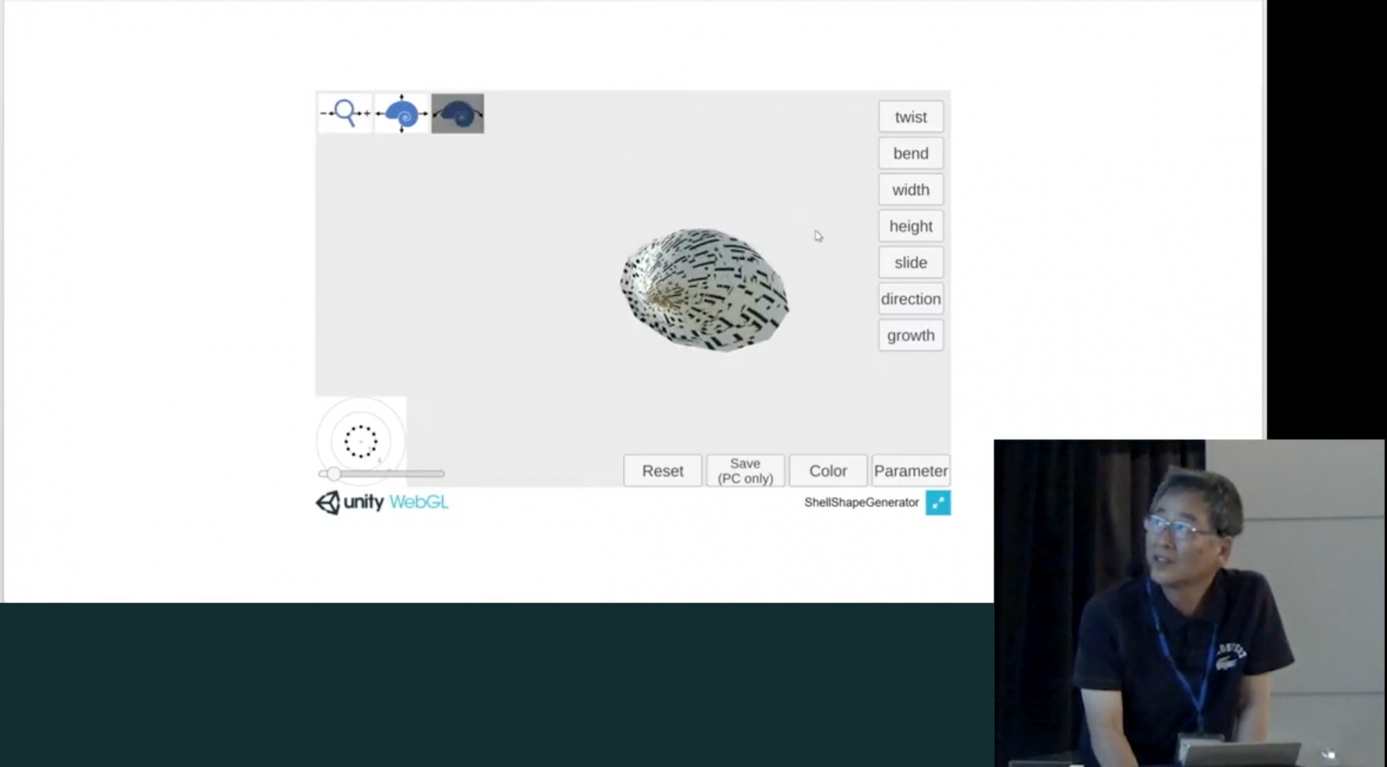 このシミュレーターの凄いところは、巻貝はもちろん、二枚貝も作れるところです。みなさんは二枚貝と巻貝は全然違う形だと思っていたのではないでしょうか。実は体の形を変えずに成長するには5つのパラメーターしかいじれなくて、どの貝にも共通している、というのがこのシミュレーターでわかってもらえたと思います。なかなかすっきりしませんか?