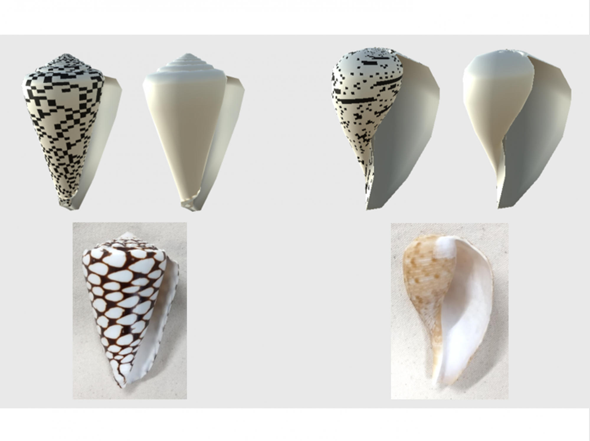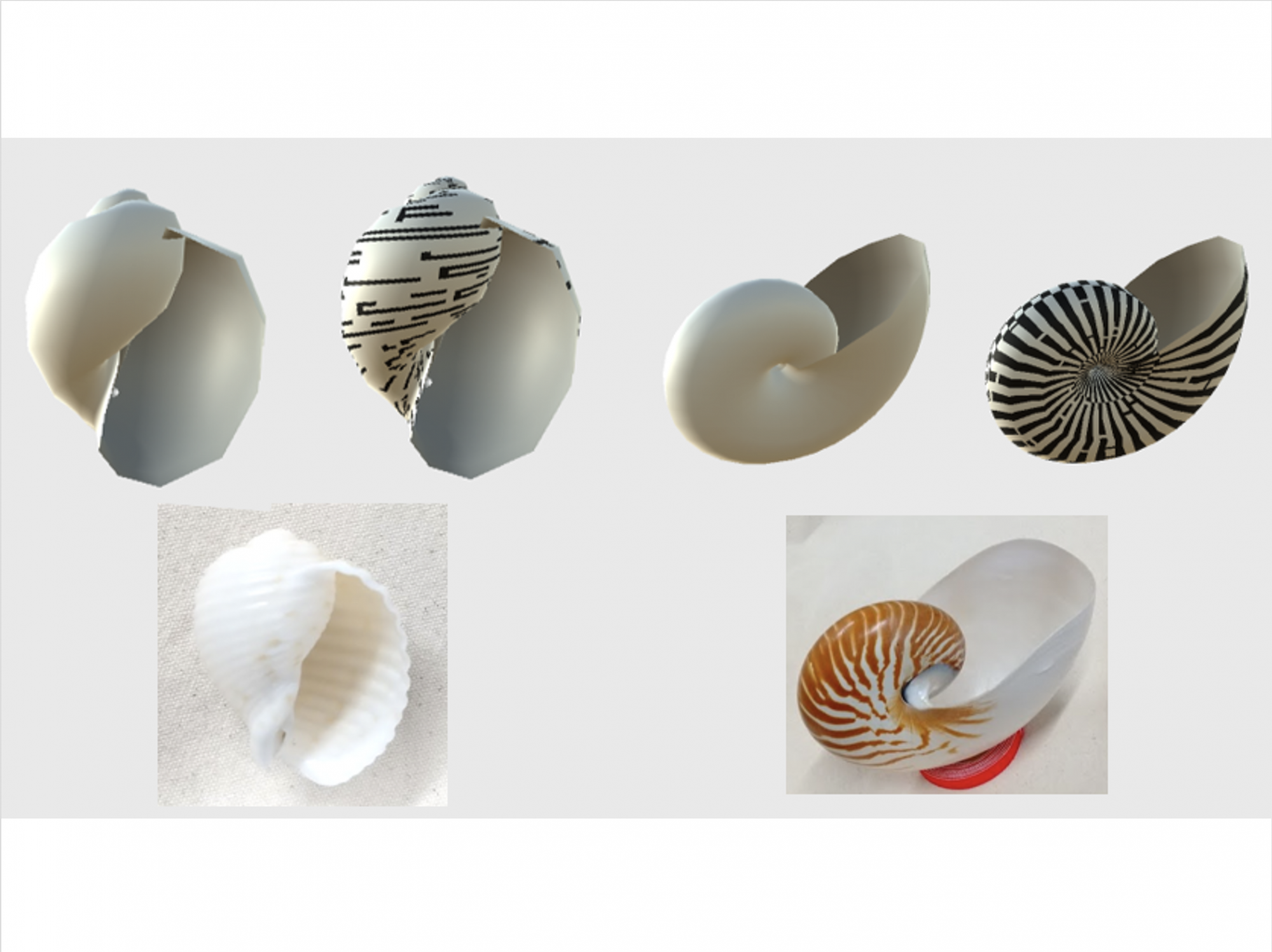 貝の基本形は円錐です。でも世の中にはいろんな形の貝殻がありますよね。円錐を基本形に、バリエーションを出すためにはどうしたら良いのか。