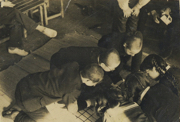 国語の授業で百人一首。お下げ髪の女子が本人(手前右端)。