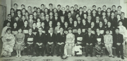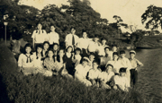 結婚式(1964年)。前列左から五人目より水島三一郎先生、ご主人、本人、水島夫人。江上先生(三列左から七人目)。