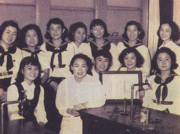 全校の学芸会で島崎藤村の詩を朗読(本人:左から二人目)。
