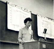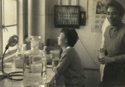 研究室を離れてからも江上先生のお手伝をしていました。英語の著作の一部共著での執筆や翻訳など。家庭に入っていた五年間、科学を考えていられたのは先生のおかげです。「科学映画協会」のお手伝いもあります。科学映画製作の東京シネマの岡田桑三社長を中心に、江上先生と朝永先生が応援団になって科学映画協会をつくることになりました。当時、ドイツではさまざまな学問の成果を映像で記録する「エンサイクロペディア・シネマトグラフィカ」という壮大なプロジェクトがあり、岡田さんはそこに作品を提供していました。日本でそのような活動をしようというわけです。資金が必要で、岡田さんに伴われて実業界の方や国の機関を資金集めに回ったのも他では得難い経験でした。シナリオの科学的な部分のチェックの仕事もしました。