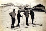 長野県白馬の栂池高原へ渡辺研の仲間とスキー旅行(1960年頃)。左から京極好正、本人、松原謙一。