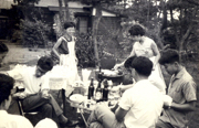 渡辺格先生の慶応大退職記念の会で(1982年)。左から渡辺先生、松原謙一、本人、渡辺先生の奥様。