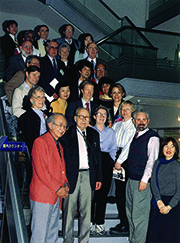 1997年4月、岡田先生がオーガナイザーを務めたシンポジウム「発生生物学の半世紀」の最終日にジョン・ガードン博士(3列目右から2番目)ら約30名の研究者がBRHを訪問してくださった。(本人:3列目左から2番目)