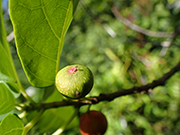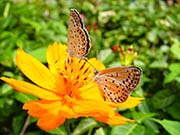 十年目ころから、発生・進化に加えて生態系に目を向ける研究を始めました。イチジクとその花粉を運ぶイチジクコバチとの共生と進化を探る研究、母チョウが子どもの食草を見分けて産卵するしくみを探る研究です。その中で、研究と日常をつなぐ展示、Ω食草園をつくりました。Ωアワード受賞での賞金でBRHらしいことをしたいと考え、世の中に昆虫園や植物園はあるけれど、食草園はどこにもないと気づきました。チョウはそれぞれ食草が異なるので可愛い植物が揃う場になりそうなのに。ないとなるとやってみたい。けれどもBRHで使える場所はコンクリートの壁に囲まれた四階の屋上だけです。こんなところにチョウが来てくれるかしらと思いましたが挑戦しました。もしチョウがこなくてもチョウの食草の看板がついた植物が並べばそれだけで楽しい庭だと思ったのです。ところが心配をよそに食草園にはたくさんのチョウが訪れ、卵を産むようになりました。一体どうやってここを見つけるのか、研究者にもわかりません。高槻のチョウの間に噂が広がっているに違いないと思っています。この庭では、イチジクも育て始めました。チョウよりもさらに小さな体長2ミリほどのコバチもやってくるのですから、昆虫たちの能力に驚きます。