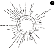 ゼニゴケとタバコの葉緑体ゲノムを比較してみる。2つのゲノムの構造はよく似ているが、一部逆向きになっていたり(inversion)、抜けているところ(deletion)がある。(Ozeki et al., 1989)