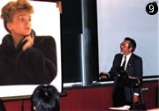 最終講義。スクリーンに美女!?おちゃめな学生が、写真を合成してプレゼントした。