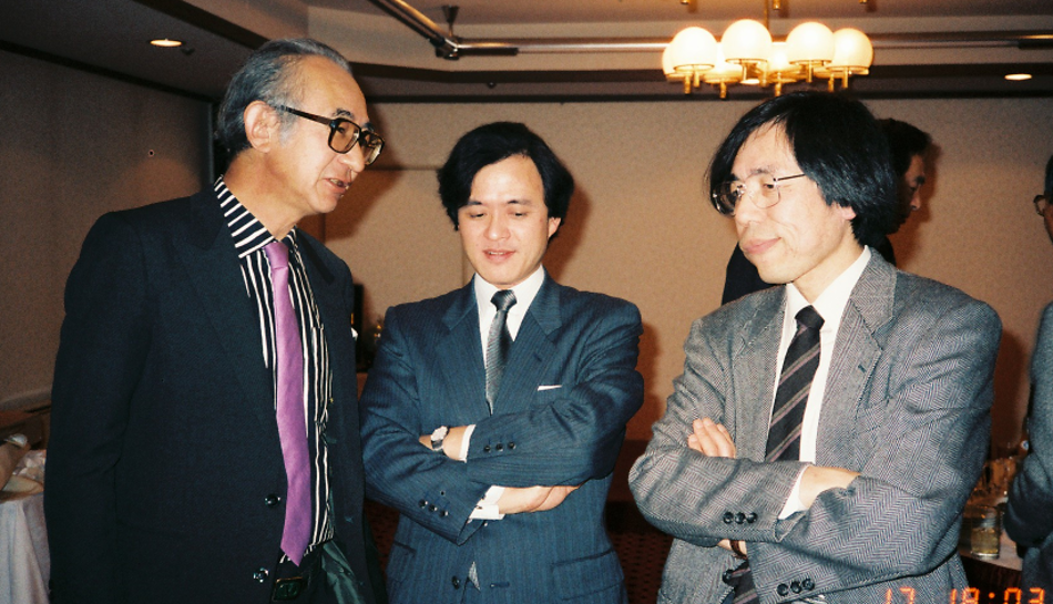 大学院へ進学した時の岡田研のメンバー。左から岡田節人教授、近藤寿人助手、竹市雅俊助教授。