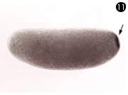 それに極細胞質を移植してから発生させた胞胚。極細胞ができているのがわかる。極細胞の下に胞胚に針をさした傷が残っている。この写真は、Davidsonはじめ多くの教科書に使われた。