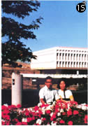 カリフォルニア大学アーバイン校で。ショウジョウバエのマイクロインジェクションに取り組んだ頃。奥に見えるのはエンジニアリング部門の建物。当時としてはモダンなもので、映画「猿の惑星」の撮影に使われた。