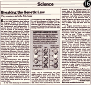 大澤博士の発見を報じた『タイム』誌(1985年4月8日号)の科学欄。小さな生き物が遺伝暗号の法則を破る、という見出しが躍っている。ただし、この図は正確ではない