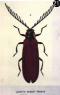 大澤博士が三重県湯の山で発見したベニボタルの新種(中根猛彦『Fauna Japonica Lycydae』 1969ACADEMIC PRESS OF JAPANより)。ふつうのベニボタル(写真20)の一種だが、交尾器の形、そのほかのいくつかに違いがある。