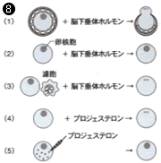 (4)卵母細胞をプロジェステロンを加えた溶液に浸すと、成熟する。