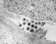 ラウス肉腫ウィルスの電子顕微鏡写真。