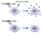 ラウス肉腫ウィルスとヘルパーウィルス。