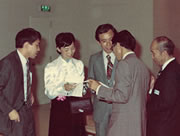 81年 慶応大学の渡辺研に遊びに来たシドニーブレンナー博士と。(前列中央:本人・右斜め上:渡辺格先生)