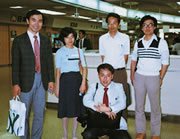ジャクソン研究所への留学の際に見送りに来てくれた慶応の仲間と。(前列、本人。後列、左から御子柴博士、安藤博士、猪子博士、木村博士。)