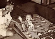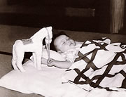 1944年 1歳の頃。お馬さんを持ってぐっすり。