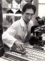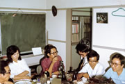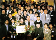 日本動物学会賞受章祝賀会(1998年、63歳)。研究者仲間に囲まれて。