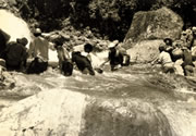 北海道ポロシリ岳調査。濁流を15回渡渉。(左から4人目:本人)