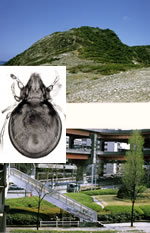 最近は、都市にいるダニの研究しています。全国調査でどんな土にもダニがみつかるので、どこまでいくといなくなるのかが知りたくなったのです。最初に見つけたのは渋谷の東急デパートの屋上で、タイルの隙間の土にコケが生えてるのを見て、もしやと思ってスプーンですくってツルグレン装置にかけたらダニが出てきた。それがなんと、日本全国2900地点調査のどこからも出てこなかったダニだったのです。それで旅行に行くたびにデパートの屋上に上ってサンプリングしたのですが、釧路から那覇までほとんどのビルにいましたね。全部で20種類いましたが、シワイボダニ、サカモリコイタダニなどの4種類が圧倒的に多い。夏は手でさわれないくらい熱くて、雨が降らないとカラカラになる。冬はすごく寒くなり、栄養源になる有機物もきわめて少ないという過酷な環境です。こんなところにも生きものがいたことに興味をもってくれる編集者がいて、『都市化とダニ』という本になりました。本の帯には、「都会のコンクリートジャングルにひっそりと暮らすダニ達の生態。このまま都市化が究極の状態にまで進めば、都市は人とコケとダニしか住めない世界になるだろうと著者は予言する」なんて書かれていますが、日本全国のビルを写真つきで紹介していますから、読んだ人は、自分の知ってるあんなところにもいるのかと驚くことでしょう。こうして都市の生物に興味が出たのですが、僕の考える都市生物は5群。まず都市の廃棄物に依存して生活するドブネズミとかカラスなど。生息環境が変化しても都市に残留したアブラゼミなど。南方からきたクマゼミなど。外国からやってきたアオマツムシなどの帰化生物。そして、ビルなど都市の建造物が本来の生活環境と良く似ている岩壁動物です。例えばサカモリコイタダニの本来の生息地は、海岸の風衝低木林でした。年中潮風を受けて木が高く成長できない場所で、そこの土を調べたらいました。彼らにとっては、ここと都会の中央分離帯の植え込みは全く同じで、逆に、豊かな森に落ちたのは生き残れないわけです。シワイボダニはここでも見つからず、今眼をつけているのは断崖絶壁、岩棚みたいなところなので、ロッククライミングをやってる人にコケを採ってきて欲しいと頼んでいるところです。後から知ったのですが、鳥類では、ドバトやイワツバメが都市に住むようになったのは、本来の生息場所である中近東の岩場や海岸の岩壁がそれぞれ都市の環境に似ていたからだという指摘が既になされていました。都市生物のふるさと探しを始めたのは僕が最初ではないとわかって、ちょっと残念ですが。