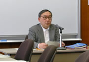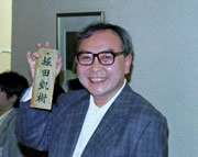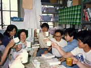 研究室で飲み会。乾杯の音頭とるのは大学院生の岡本仁(現理化学研究所)。