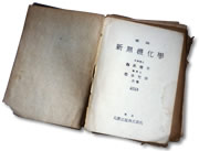 科学との出会いは疎開先で、と言っても自然ではなく本との出会いでした。何を思ったのか先生が名古屋の丸善に連れていってくれたのです。当時は戦後の混乱もあってそう簡単に汽車に乗れる時代ではありませんでしたが、超満員の汽車に揺られ、一日がかりで名古屋まで行ったことを覚えています。そこで先生が大学で使うような本格的な化学の本を薦めてくれた。実はその頃錬金術に興味をもってたからかなと思うのですが、今となっては覚えていません。小学校6年生ですから、最初は読んでも訳が分からなかったのですが、ちょうど子どもが恐竜の本を丸暗記するように、くり返し読んでいるうちになんとなく分かってくるものですね。製本が粗末だったからバラバラになってしまったので、何度もテープで修理しました。ボロボロですが今でも大切に持っています。