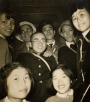 化学の本を薦めてくれた鈴木先生と疎開先の友人。(右端:本人)