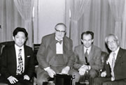 『生命の起源』の著者オパーリン(左から2番目)と。(左端:本人、右端:在日中のオパーリンの主治医をつとめた父)