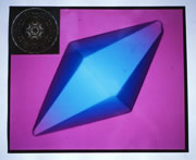 Thermus thermophillusのもつ酵素(イソプロピルリンゴ酸デヒドロゲナーゼ)の結晶。左上がX線回折写真。回折写真を解析して明らかになった立体構造の模型は研究室に飾ってあります。