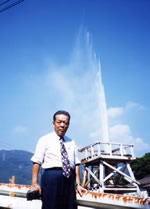 伊豆峰温泉にて。熱水が30メートルも吹き上がることがある。