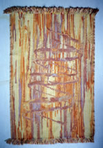 東京薬科大学生命科学部創設時につくった敷物。所在地、八王子の名産だった絹でできており、夕焼け小焼けの歌が生まれた地で生命科学の研究をすることを表すため、夕焼けとDNA二重らせんをイメージしている。