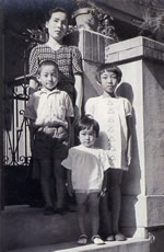国民学校1年生。母、姉、妹と神戸の自宅前で。