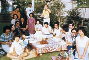 金沢大学がん研究所の仲間と、自宅の庭でバーベキューパーティー。この庭にはチョウの食草園も作った。