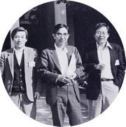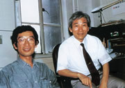 分子生物学の先輩末岡登さん(右)と大澤省三さん(中央)。