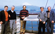 日本のゲノム研究を応援してくれた仲間達。左から、榊佳之(現ゲノム科学総合研究センター長)、松原謙一、藤山秋佐夫(現国立情報学研究所教授)、吉田光昭(現万有製薬株式会社つくば研究所長、本人)