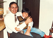ジャコブソン博士の自宅で。博士に抱っこしてもらっているのは次女。