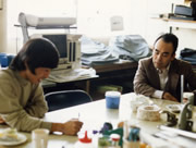 モノクローナル抗体のスクリーニングを担当した高木新助手(現名古屋大学助教授。右端)。(左端:本人)