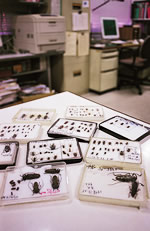 キャンパスの中に林がある名古屋大学では、カミキリムシがたくさんとれる。簡単に標本が作れて、かさばらないのがお気に入り。今も昔も、虫がそばにいると心が落ち着く。
