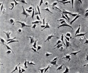 水晶体細胞を培養し続けているうちに、あることに気づきました。培養するとき、まず胚から取りだした水晶体細胞をトリプシンという酵素でバラバラにして培養皿に蒔きます。細胞どうしの接着が切れて一つ一つ丸くなった細胞が底に沈むと皿にくっついて広がった形になるのですが、条件によってそのくっつき方が異なりました。網膜培養液の成分を加えた時の方が、細胞が培養皿に接着するのが遅れるのです。何か面白いことがありそうだと思いました。細胞が培養皿に接着する現象は、培養条件を変えるという「操作」ができます。これなら、モデルを考えて、それを検証するという解析的な実験が可能です。なにも起きない水晶体細胞の分化をただ観察するだけの研究にそろそろ飽き飽きしていました。