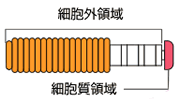 細胞と細胞を繋ぐカドヘリンタンパク質。細胞外領域と細胞内領域をもつ膜タンパク質であり、細胞外領域にカルシウムイオンの結合部位がある。